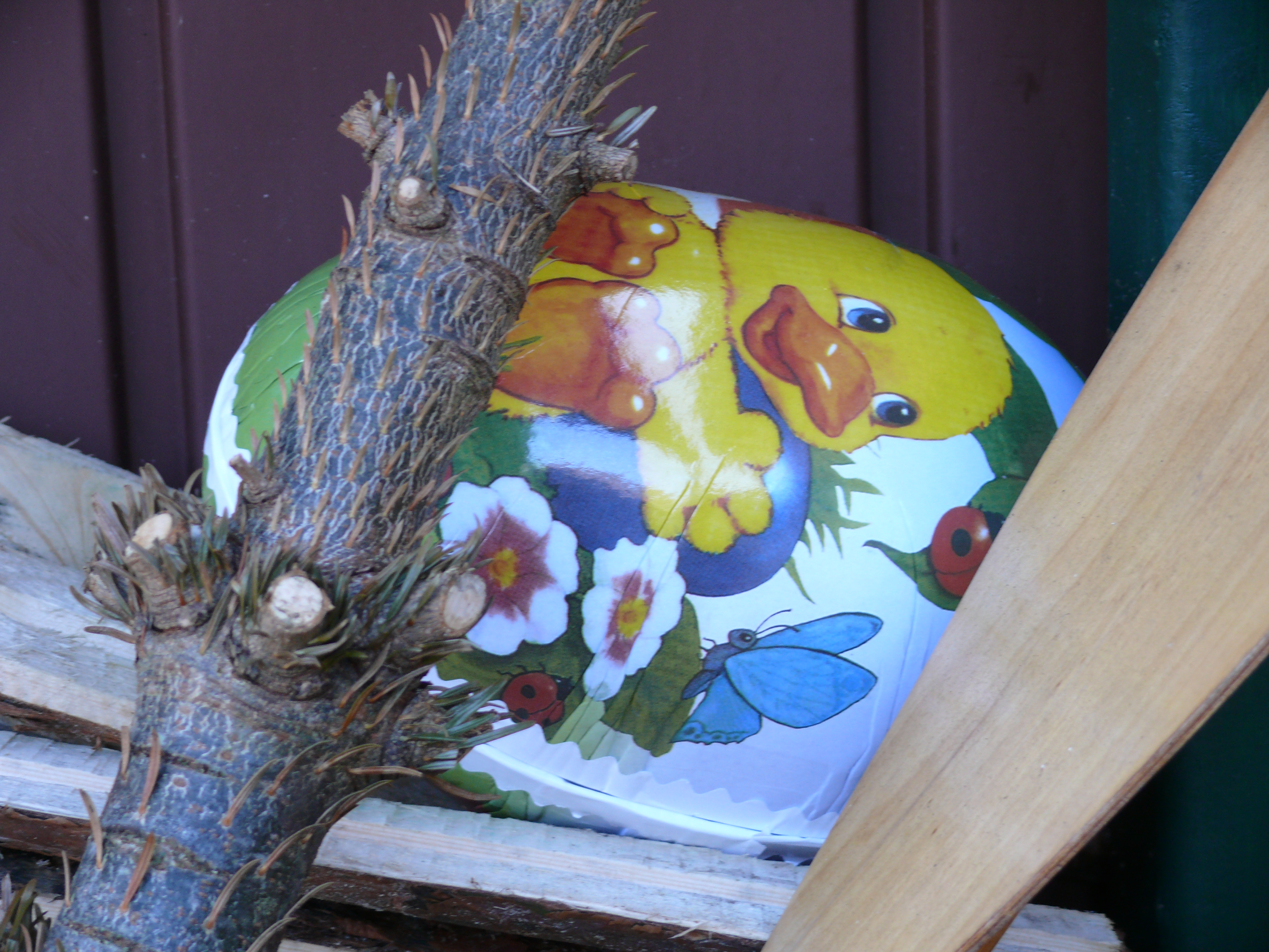 Ich liebe den Brauch, kleine Geschenke im Garten zu verstecken und dann inmitten des Frühlings beim Suchen und Finden dabeizusein. Jede Knospe, jede Blume (Quendelblättriges Sandkraut reckt die winzigen Blüten, der Flieder geht gleich auf, der erste Löwenzahn hat schon geblüht – seltsamerweise habe ich hier noch keinen Huflattich gesehen) ist ja eigentlich schon ein Geschenk und ich finde jeden Tag neue, verstehe aber, dass die Kinder gerne noch etwas Zusätzliches wollen. So dekopuristisch ich sonst bin, um Ostern herum verteile ich gerne Eier, Frühblüher, Hasen und Hühner in der Gegend, das fruchtbare Erwachen, auch diesmal wieder, mag ich feiern.