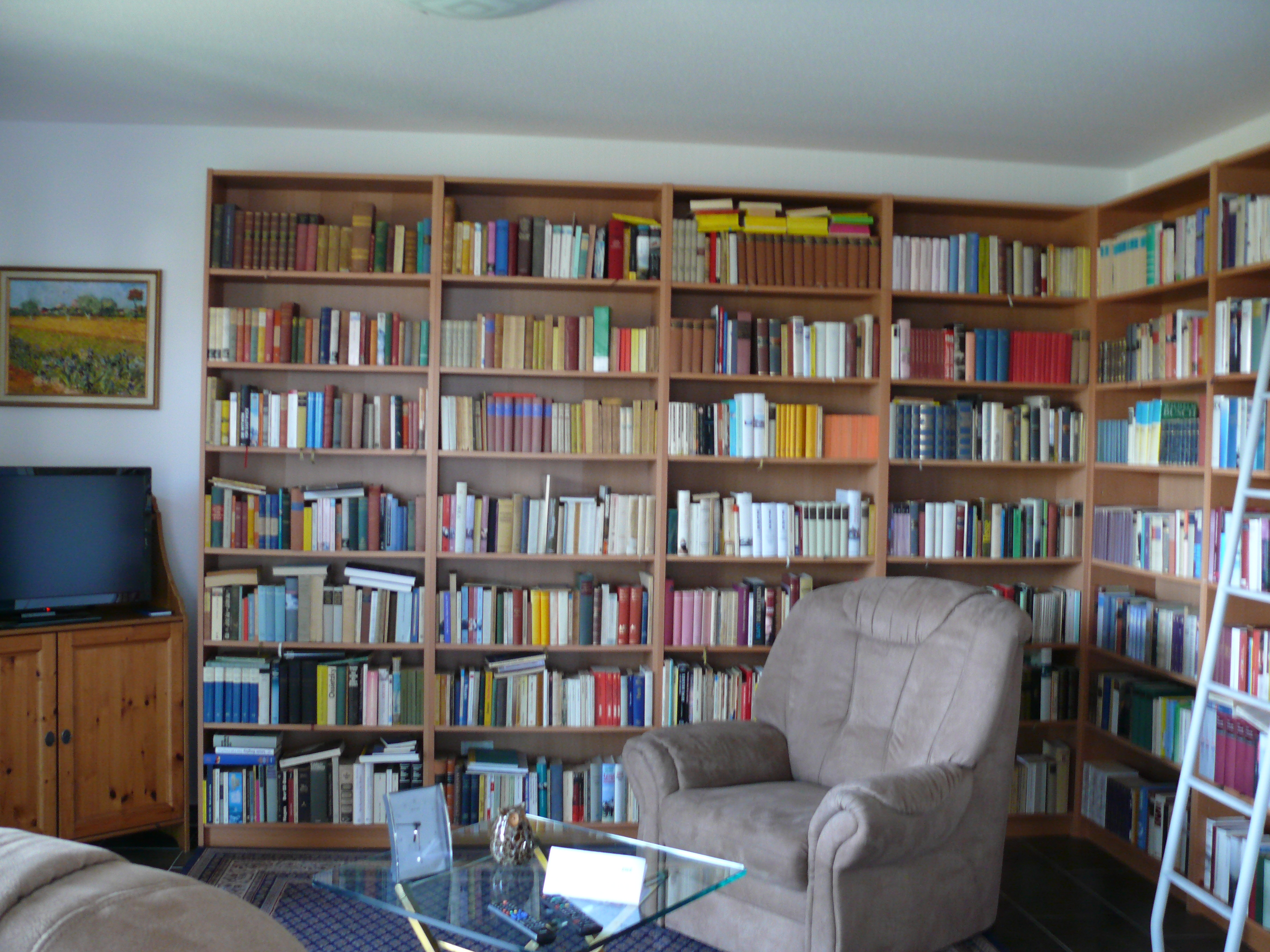 Vielleicht quartiere ich mich nächstens mal für einen Lesetag bei meinem Vater ein. Es hat schon Spaß gemacht, alle die lieben Bücher mal wieder in die Hand zu nehmen. Wobei ich weder beim Ein-, noch beim Auspacken „Der Arzt Gion“ gesehen habe, dabei will ich das unbedingt wieder mal lesen! (Zuhause vergnüge ich mich derzeit mit „By the pricking of my thumbs“ zum aberhundertsten Mal, „Kurze Geschichte des Traktors auf Ukrainisch“ und „Am stillen Ozean“.)